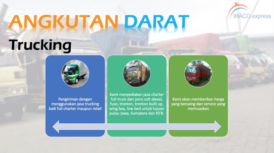 Adalah pengiriman dengan menggunakan jasa trucking baik full charter maupun retail.